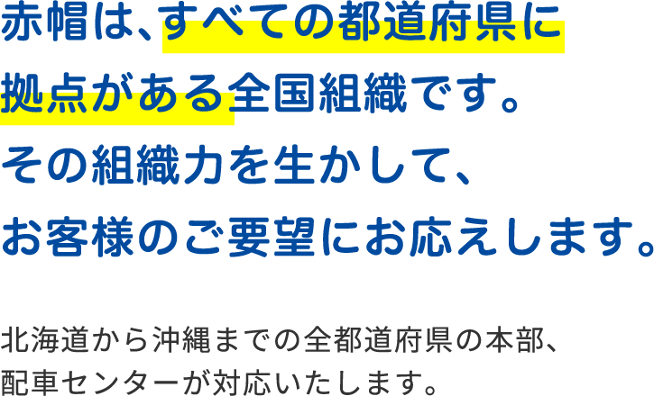 緊急配送から個人配送まで、赤帽は組合組織力を活かして、確実・丁寧・安心。不安に思ったことなどは、お気軽にご相談ください。しっかりとご説明いたします!